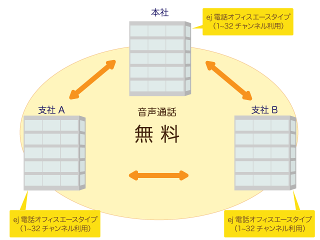 - 社内(事業所間)への通話は、NTT東日本エリア内またはNTT西日本エリア内の「ej電話 オフィスエースタイプ」同一契約者の通話の場合のみ無料となります。